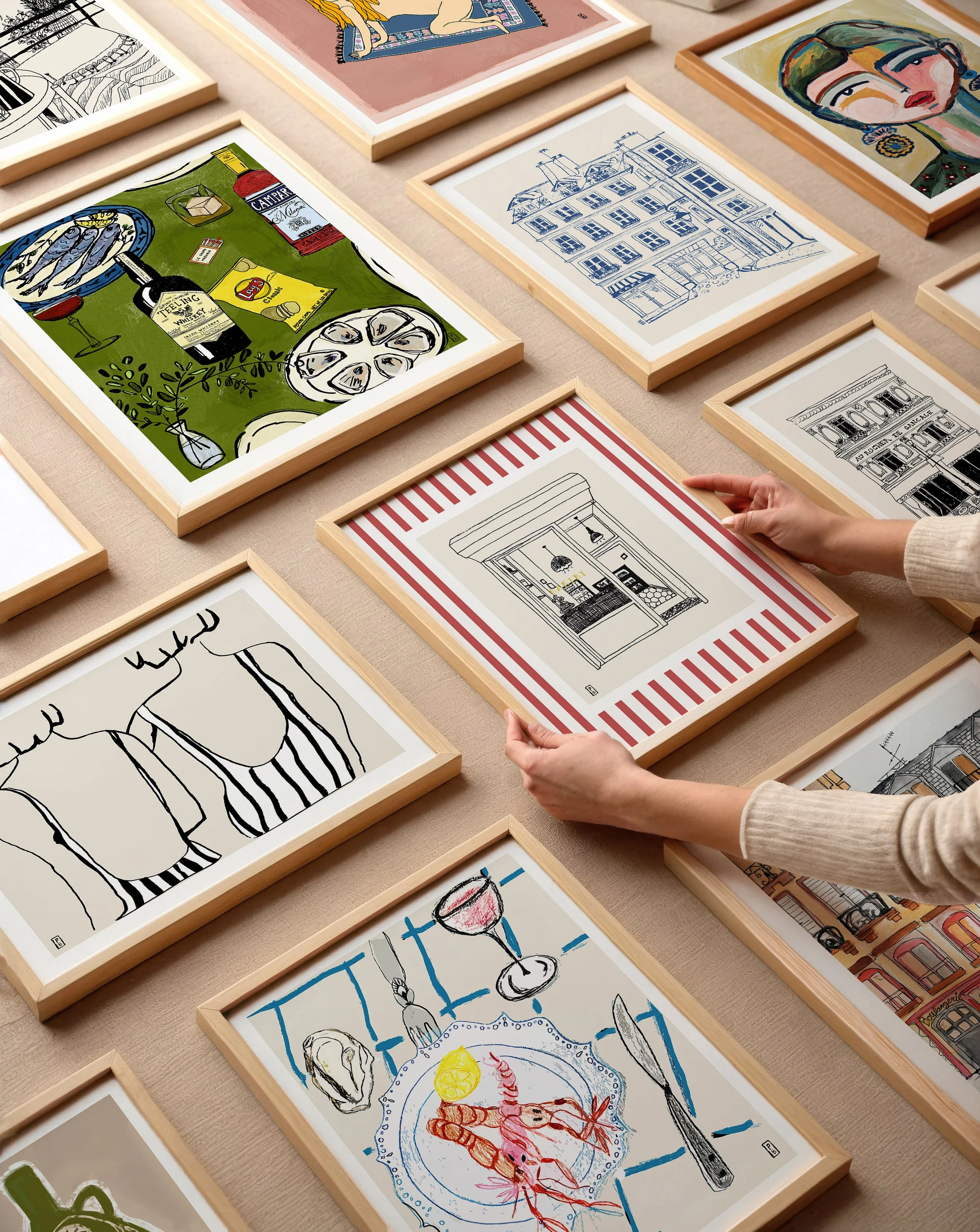 Architectural illustrations are a great way to infuse your personality and travels into your home decor. Each piece captures small, meaningful moments, a charming storefront or a bustling city block that embodies the spirit of a place.