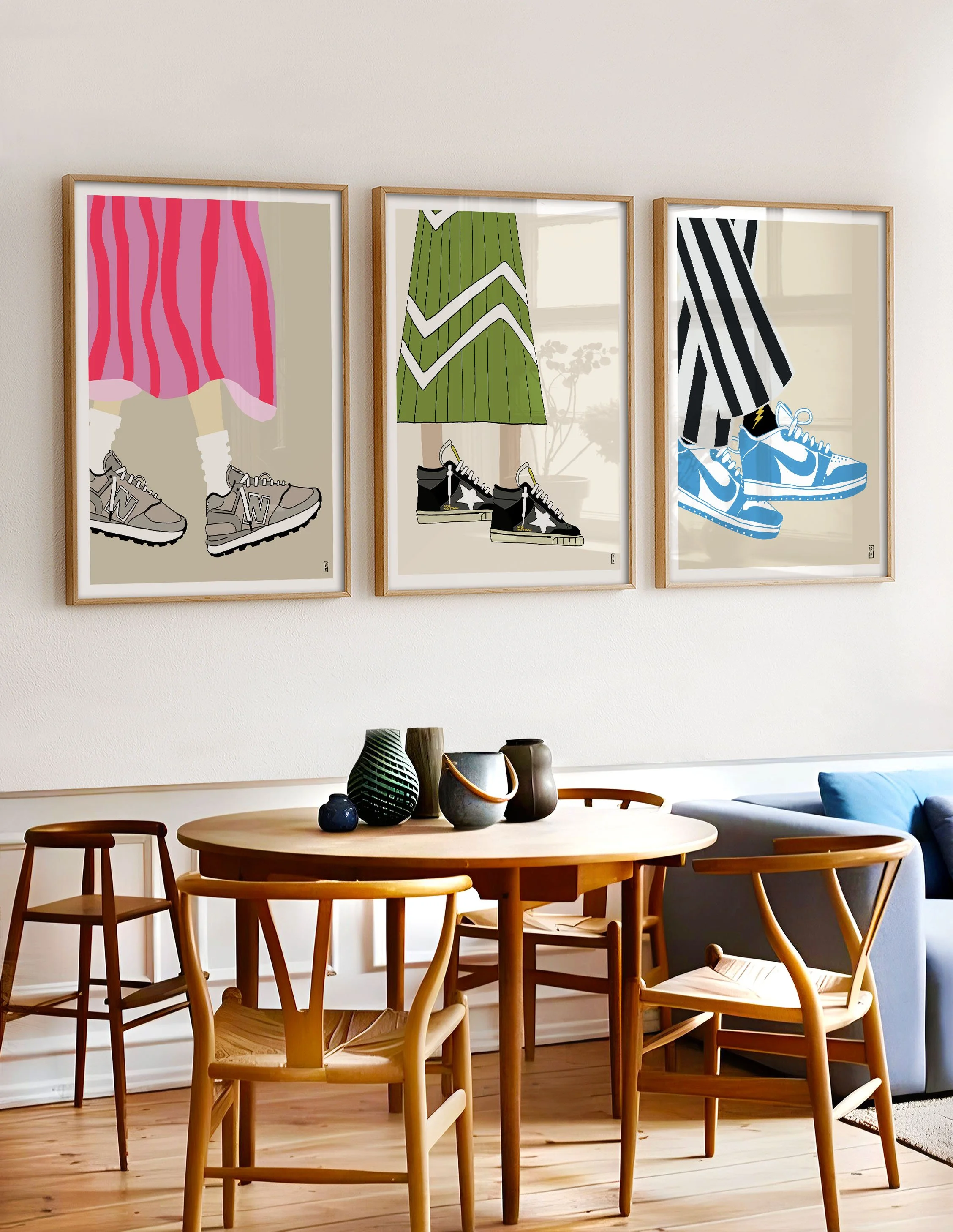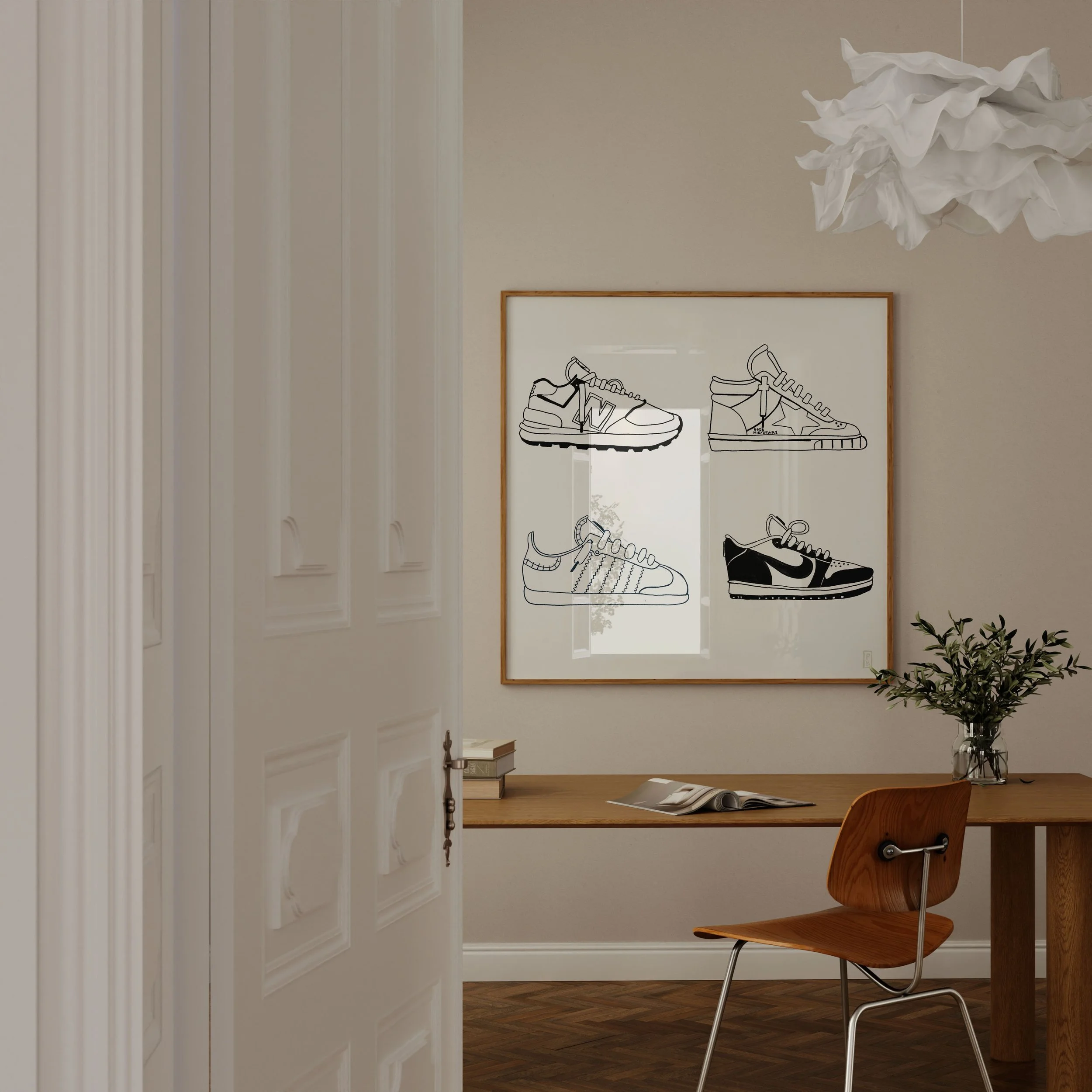 Whether chunky 90’s styles or the slim silhouette of Sambas, it seems that people are finally embracing comfort over formality. Something I can totally get behind as someone forced to wear boring office casual dress codes for years. I love what I’m seeing on the street and on social media and directly channel that inspiration when creating some of my favorite shoe art prints. Which one is your favorite?